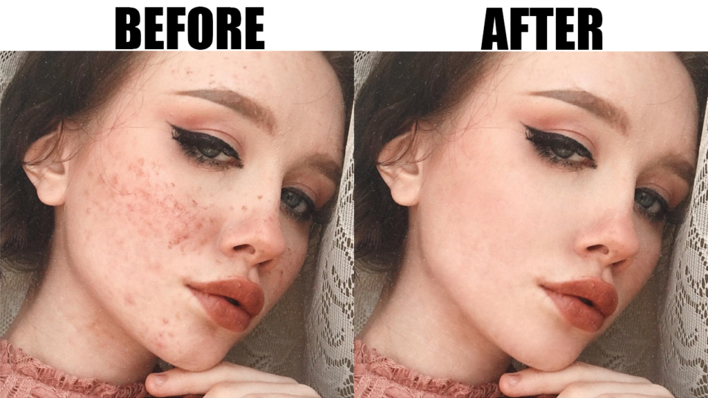 The before and after photo demonstrates how I used Photoshop to remove blemishes and improved visual.